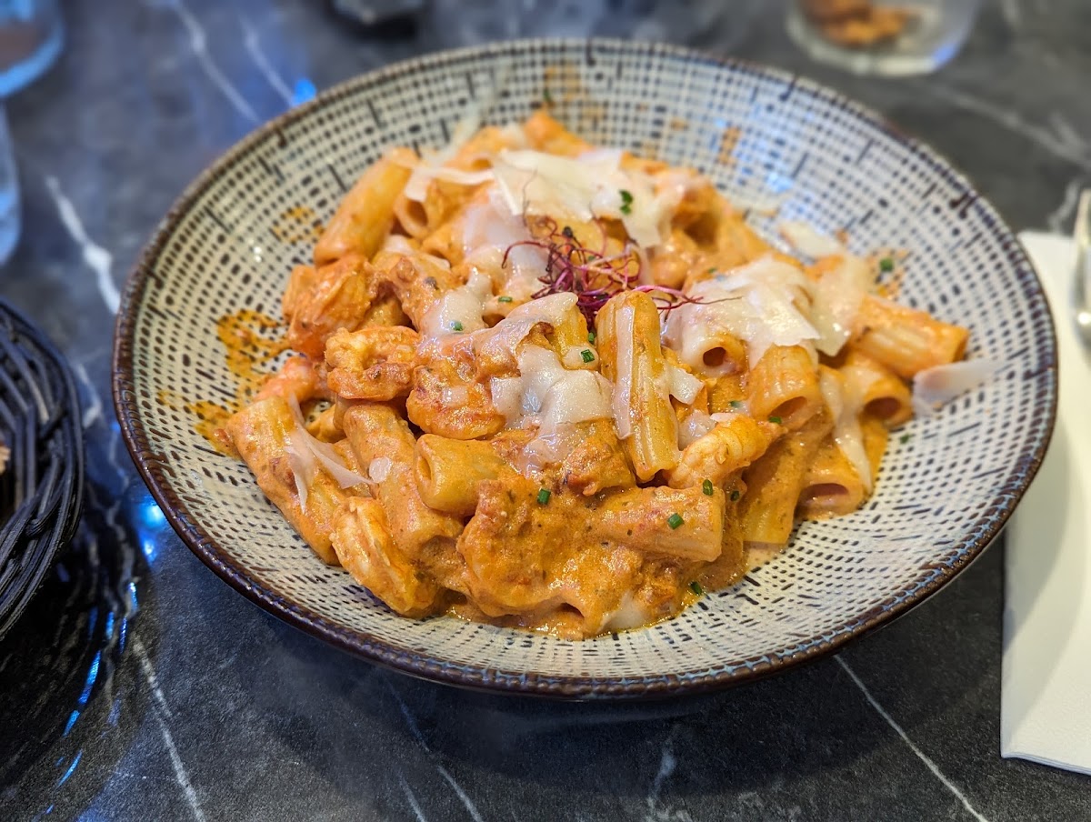 We were skeptical about trying out a place that looked rather empty. Glad we gave it a chance. Nice break from tourist traps offering typical, yet sometimes dull (meat + potatoe) Alsacian cuisine. Food tasted great to our surprise. It had seasoning and flavor. We ordered shrimp pasta, whole grilled fish, salmon, and onglet steak. Service (polite, but ordinary) and atmosphere (lacks soul) here will not win any prize, but recommend this restaurant for the food. 5 star for the food. Too bad there is no kids menu. Had to order adult meal that our child could not finish.